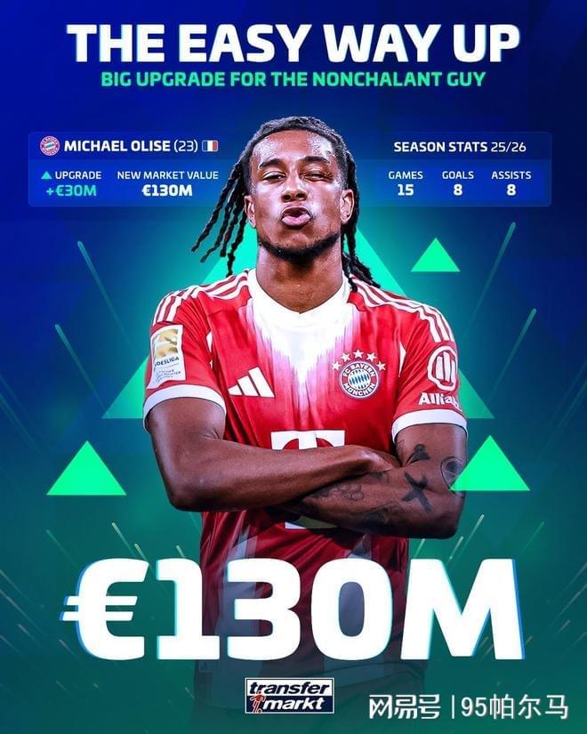 价值1.4亿欧元的穆西亚拉是德甲的明星菜。即使进入恢复阶段,拜仁的幸福感也不会下降。此外,去年夏天以5300万欧元聘请的迈克尔·奥利塞,也成为德甲豪门眼中的“又一道美味”。在最新的德甲球员身价榜中,拜仁17号身价为1.3亿欧元,仅次于穆西亚拉,增加了3000万欧元。 《德传》的权威性可见一斑。用一位市场研究人员的话说,“Olisei 现在是世界上最好的参与者之一。”说白了,Olisei就是“一张意外的彩票”。 5300万欧元的转会费和5年的合同体现了拜仁对这位年轻球员的信心,但他们不敢指望这位法国人仅仅一个赛季就能转变。奥利塞上赛季为拜仁出战50场比赛,打进17球并送出18次助攻,荣获德甲年度最佳新秀和助攻王称号。新赛季虽然只打了15场比赛,拜仁之翼立即攻入8球并送出7次助攻。他的凶猛疯狂的画作无愧于“德甲二哥”的称号。从大联盟退役的穆勒坦言:“奥利塞可以带着里贝里这样的球员带领拜仁前进。”尤其是里贝里对自己的青训球员唯一的要求就是“学好德语”,这似乎也从侧面证明了这位23岁的球员在球场上的完美。仅凭进球和助攻数据并不能充分展现奥利塞的天赋,但上赛季作为德甲新秀被评为拜仁最佳球员绝非易事。他是德甲联赛中创造机会最多(32次)和成功传球最多(16次)的最佳射手。孔帕尼·洛吉亚拉教练被誉为“特殊天才”,这并不奇怪。有趣的是,拜仁主帅将习惯踢边锋的奥利塞与德布劳内进行了技术方面的比较。这似乎是一种本能的偏好和极端的期待。奥利斯曾获得德甲冠军并入围金球奖的前水晶宫球员E加盟拜耳。他在润找到了一个舒适的地方。也就是说,拜仁彻底延长了法国球员的职业生涯。德尚表示:“奥利塞自从来到拜仁以来发生的变化使他成为我们的关键球员。”在进入德甲之前,你应该知道奥利塞并没有进入2024年欧洲杯的大名单。当时球星加利亚·加洛贡献任意球,成功破门。显然这只是“迟到”的第一步。值得注意的是,法国媒体普遍认为奥利塞这位尝试在国家队中锋位置上进攻的球员,他是一个“大脑”。你可以连接攻击,利用机会,创造攻击,为你带来胜利。奥利斯多样化的战术身份与她的进攻思维相匹配。 “他可能是一名中场球员,但绝对不是一名后卫“我喜欢在进攻上尝试不同的可能性。”在拜仁配合默契、在法国国家队也发挥关键作用的奥利塞成为亿万富翁先生并非巧合。从身体上看,他似乎不符合“黑暗和强硬”的标准,但他缺乏细腻的球感、节奏变化和内线速度。凯恩将他们的关系描述为“我们之间不断增长的信任”。“他总是愿意进攻第一线” 姆巴佩感叹道。在受到两位伟大前锋钦佩的同时,奥利塞被证实伪装得很好,这自然引发了新的丑闻。传闻是因为利物浦打算考虑奥利塞作为萨拉赫的接班人,而姆巴佩在与法国队的训练中开玩笑地邀请他前往伯纳乌。你的愿望实现了吗?我愿意尽我所能。”身家1.3亿欧元的明星心动了吗?这不是一件容易的事。拜仁,至少没有足够的人才目前还没有,希望通过提高转会费来劝阻追求者,拜仁老板计划延长这位法国国脚的合同。显然,他目前1350万欧元的年薪无法与奥利塞的贡献挂钩。最重要的是,Orise 继续朝两个方向发展。这意味着他们有动力明确表示“我想与拜仁一起创造历史”。事实上,当外界以罗本和里贝里为标准时,奥利塞希望未来的自己能够成为拜仁的一道新风景。事情还没有结束,结果还没有取得,拜仁并不满足于成为德甲领头羊。而奥利塞并不打算将自己局限于德甲最佳启示球员的称号。从水晶宫到拜仁,这是一个平台的跨越。也许数据和价值的爆炸式增长是出人意料的,但 Olise 的成功绝非侥幸。他在水晶宫度过了三年磨练是技巧,打进任意球,实现助攻帽子戏法,打破了自己的单赛季进球纪录,一度成为曼联的死敌。但曼城和切尔西因伤病屡屡,不愿进行大投入。这并不奇怪。当他22岁时腿筋严重受伤时,时任教练霍奇森表示:“这是毁灭性的打击。”还有一场悲剧,他替补上场五分钟后旧伤复发。所以去年拜仁花重金签下奥利塞时,最初只花了1000万欧元的水晶宫感叹“太多了”。往往都是黑店的Palace,卖得很好。令人有点惊讶的是,奥利塞在真正在水晶宫发展之前就已经拥有丰富的职业生涯。他在阿森纳青年队效力了一年,在切尔西青年队效力了七年,并在曼城青年队呆了几个月。这不是在奥利斯,他的才华虽然没有展现出来,但确实存在。当他在切尔西训练场卷入一场斗殴并失去在斯坦福桥训练的机会时,这位年轻人的不确定性尤其明显。不要害怕吃好食物。奥利斯(Olise)对“苗”的阅读走在了正确的轨道上。 20-21赛季,他出战42场比赛,贡献6个进球和10次助攻,并赢得了全英赛冠军。他被选为年度最佳年轻球员。埃利奥特给了他一个点球。换句话说,20 岁的奥利斯才刚刚开始真正实现她的梦想。英冠的雷丁和英超的水晶宫都是起点。拜仁与奥利塞的双赢模式将会绽放出怎样的花朵?让我们拭目以待吧!