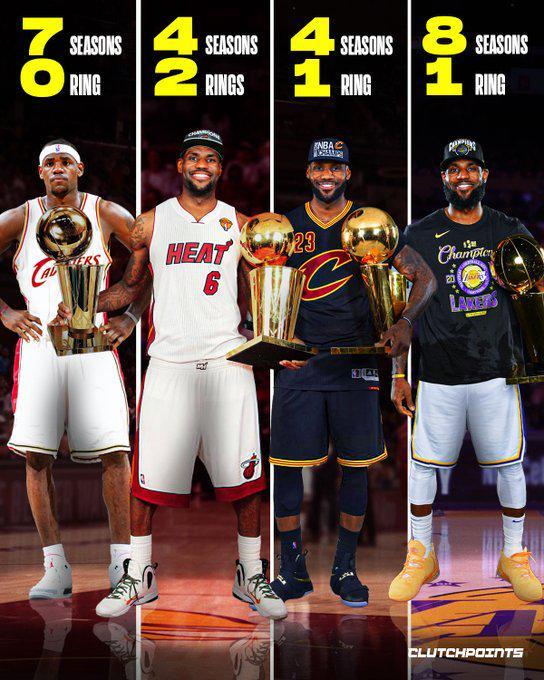 镭速体育10月15日电 据美国媒体ClutchPoints最新消息,令人难以置信的是,勒布朗·詹姆斯即将进入他在湖人队的第八个赛季。尽管他在洛杉矶已经呆了很长时间,也经历了时代的变迁,但不知何故,他总觉得自己才刚刚抵达。 1.骑士队(第1赛季):7个赛季,0次总冠军。 2.热火队:4个赛季,2次总冠军。 3.骑士队(第2赛季):4个赛季,1次总冠军。 4.湖人队:8个赛季,1次总冠军。当然,他在克利夫兰度过了很多年,但在他职业生涯的这个阶段,他能在一支球队呆那么长时间吗?这很奇怪。对于勒布朗·詹姆斯来说,时间总是很特别。上赛季,詹姆斯常规赛一共出战70场比赛,场均出场34.9分钟,得到24.4分、7.8个篮板和8.2次助攻,投篮命中率为51.3%。季后赛期间,詹姆斯一共出场5场比赛,场均上场40.7分钟,得到25.4分、9个篮板、5次助攻。.6次助攻,两次抢断,投篮命中率48.9%。