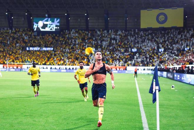 幽灵体育10月19日讯 北京时间今天凌晨,利雅得在沙特联赛第五轮比赛中击败哈萨征服者队。葡萄牙巨星克里斯蒂亚诺·罗纳尔多在第60分钟打进了他职业生涯的第949个进球。沙特阿拉伯利雅得体育报指出,这一次他为球迷们呈现了一场独特的视觉盛宴,再次丰富了他难忘的庆祝活动库。就在一分钟前,C罗刚刚罚丢了一个点球。然而,他们却没有表现出任何挫败感,很快就用自己强大而沉重的“重炮”炸毁了对方的球门。门将阿明·布哈里很无奈。这一次,他选择不用他标志性的“嘘”吼声来庆祝。典型的形象是高高跃起,转身,伸展双臂,轰鸣落地。相反,他选择了更具象征性的回应。这意味着脱掉衬衫,跑到替补席上,自豪地站起来,在人群面前展示他仍然强壮的肌肉。沙特媒体指出,“Yessss”是C罗最著名、使用频率最高的庆祝动作,更是在C罗的职业生涯中产生了许多难忘的“电影级”时刻,深深地铭刻在全世界球迷的记忆中。比如,他在诺坎普球场请求对方球迷保持安静,双手交叉抱在胸前,闭上眼睛说“睡吧”,进球后他拉起裤子指着大腿,向世界展示了他的肌肉。在皇马生涯中,C罗多次进球后脱衣露出腹肌,最令人难忘的是2014年欧冠决赛。在对阵马德里竞技队打入制胜的第四粒进球后,他脱掉了球衣,露出了他标志性的六块腹肌。这成为欧冠历史上的经典时刻。加盟利雅得胜利队后,C罗在进球后多次与队友一起表演传统的“Al Arda”(沙特舞蹈)。此次庆典不仅充满激情,更体现了继承人的尊重并融入沙特文化,赋予庆祝活动更深层次的象征意义。