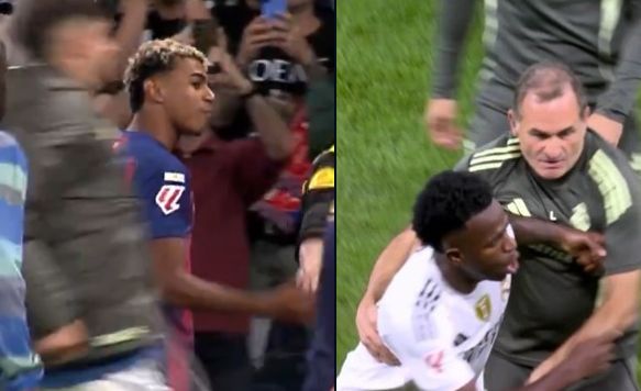 镭速体育10月28日电 西班牙国家德比结束后,Movistar+发布了几段场上片段,展示了比赛中两队球员之间的言语交流。当佩德里犯规并被红牌罚下时,贝林汉姆换上内格雷拉作为回应。比赛中,佩德里被袭击后痛苦地躺在草地上。贝灵厄姆走过,摸了摸他的额头,似乎要抬起头。这个动作立刻就被佩德里发现了,他立刻就倒了下去,神情很是不满。佩德里当场向裁判抗议,并要求贝林厄姆红牌罚下。然而贝林汉姆却没有丝毫放缓的迹象,直接回应裁判,说道:“即使在内格雷拉,我也不会给你红牌!”内格雷拉曾多年担任西班牙足协技术裁判委员会副主席。 2001年至2018年的17年间,巴塞罗那足球俱乐部向各方面支付了超过700万欧元。代表 Negreira 家族的公司。巴萨官方解释称,这笔资金用于收购“体育咨询服务”,但外界对此存在严重质疑。费兰·托雷斯嘲笑维尼修斯说他不会再主罚点球了。下半场,埃里克·加西亚手球失球。当姆巴佩准备主罚点球时,费兰·托雷斯转向维尼修斯问道:“你现在不主罚吗?”巴西人立即回应:“我不在乎。” “现在所有点球都属于姆巴佩。”当他与维尼修斯相撞时,亚马尔大喊:“我们来战斗吧!”赛后,维尼修斯与亚马尔对阵。就在这时,亚马尔威胁道:“我们来战斗吧!”维尼修斯回复道:“我会永远和你在一起!” “这个问题并没有成为一个大问题,因为其他人都被吓倒了。